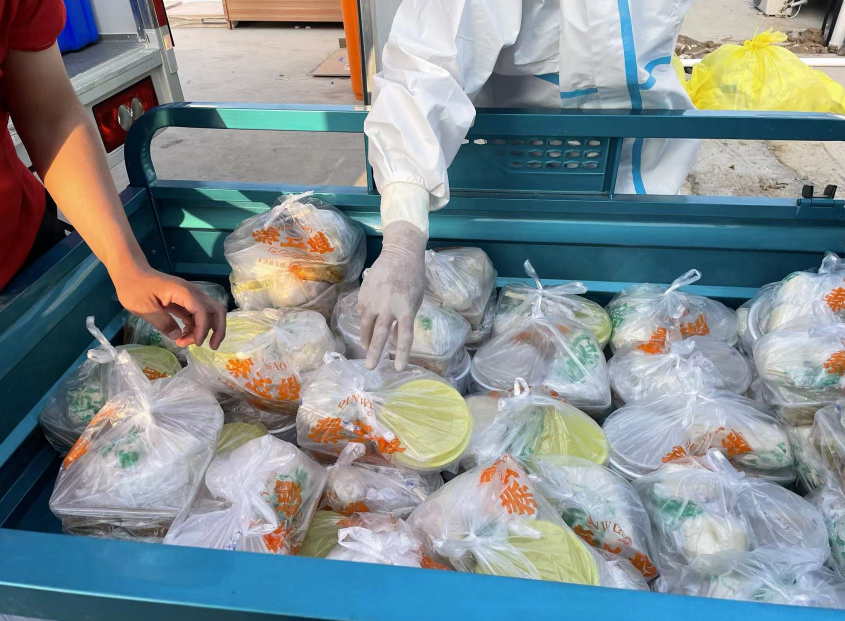 每天早上不到6点起床做核酸,穿防护服,将早餐进行分装、配送,早餐配送完毕已到了11点。