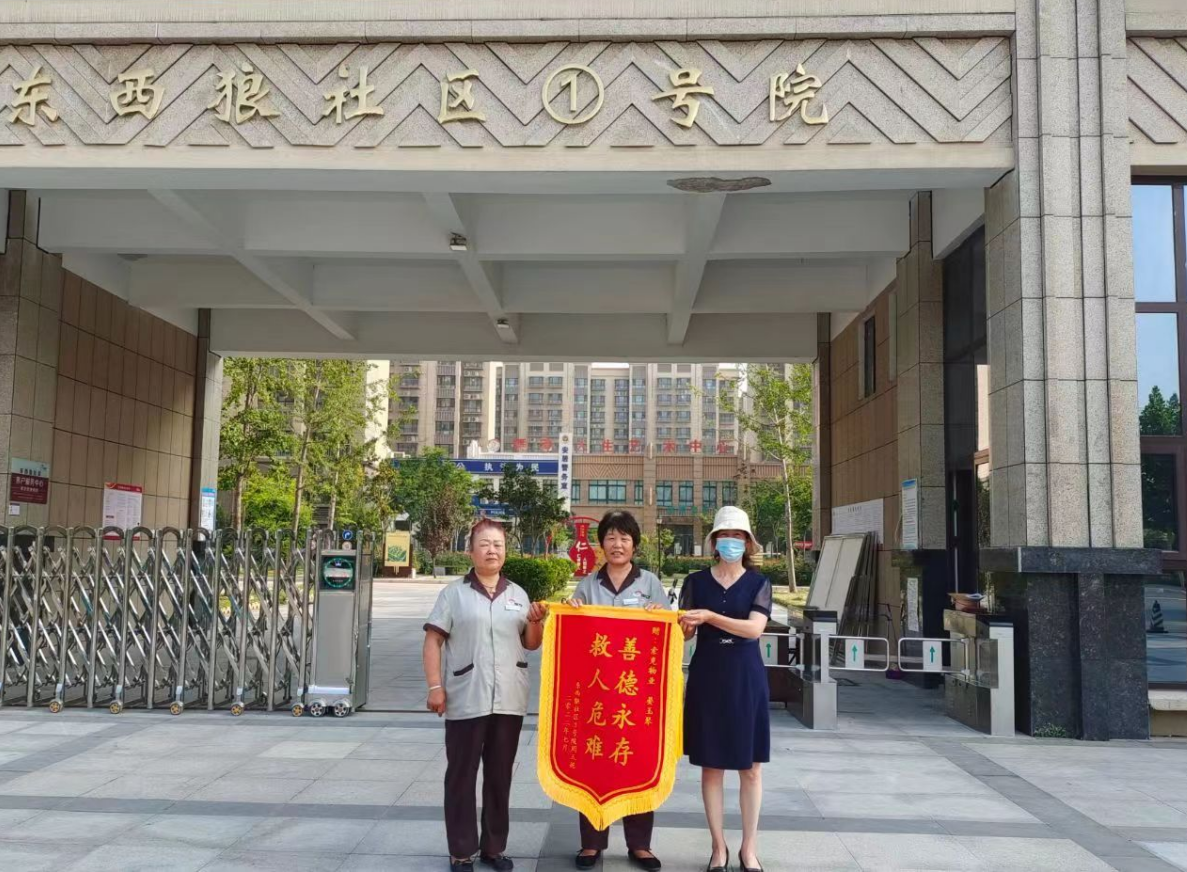 一个多月过去了,在8月2日的上午,一位女士带着锦旗来到索克狼城岗项目,经了解这位女士正是6月25日受伤的女主人公,女士满含热泪说:“当时在马路上骑电动车时不小心摔倒昏迷了,苏醒后听医护人员说,是一位好心大姐拨打120救了我,我出院后多方打听,才知道救我的好心人是狼城岗项目的物业保洁,我一定要当面感谢救命恩人,真的特别感谢,感谢索克培养了这么好的员工”。