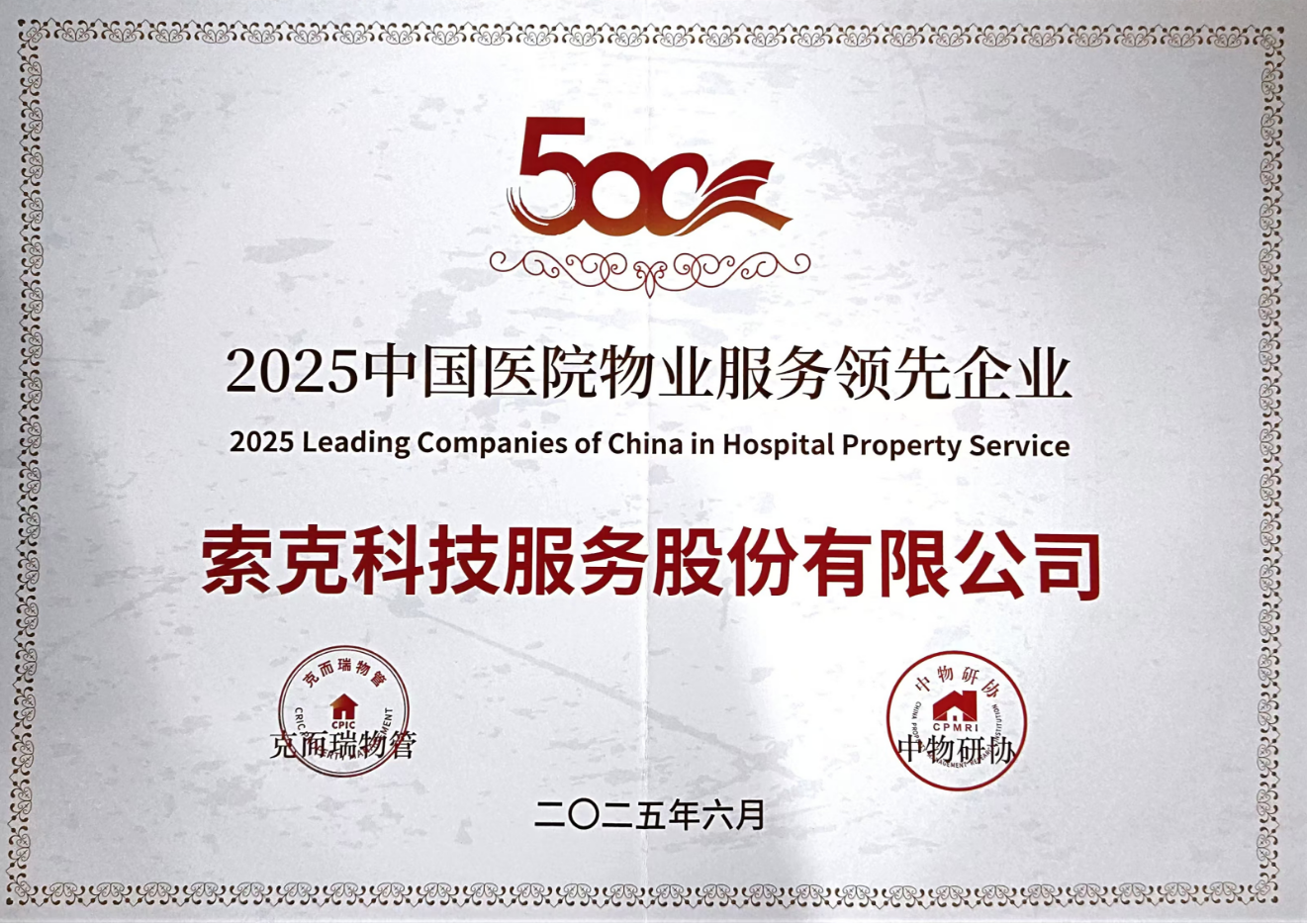 “城市物业服务领先”、“医院物业服务领先”|2025中国物业服务企业综合实力研究成果发布,索克荣获多项殊荣